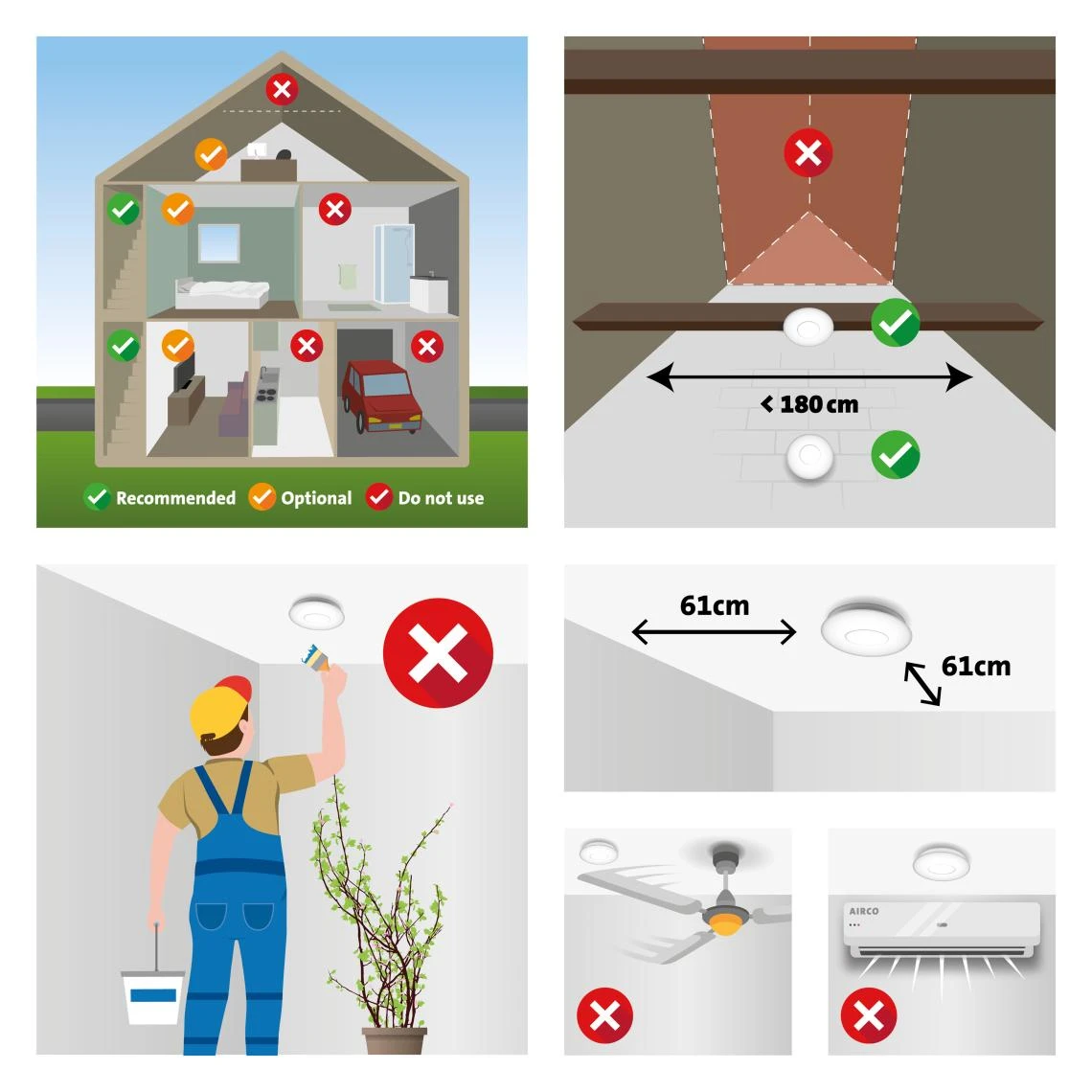 - Détecteur de fumée avec pile lithium intégrée de 10 ans 5x