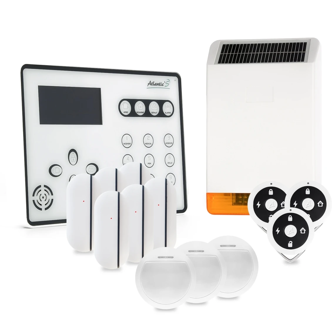 Centrale d’alarme Atlantic’S ATEOS GSM et sans fil Quantité : 1 L’ATEOS d’Atlantic’S est une centrale d’alarme de conception récente puisque lancée en début d’année 2015. Elle est le fruit de plus d’un an de développement. Ce système d’alarme sans fil reprend tous les attributs qui ont participé au succès des autres modèles de la marque et les enrichit de fonctionnalités nouvelles. L’ATEOS se distingue en particulier par : un système de communication bidirectionnel qui permet non seulement d’écouter les bruits ambiants autour de la centrale mais aussi d’interagir et de parler à travers son speaker intégré, des alertes paramétrables pour choisir en fonction de chaque type d’événement (détection périmétrique, détection volumétrique, batteries faibles, perte de signal GSM etc etc) comment être prévenu, c’est-à-dire : par appel téléphonique, par SMS, par notification à un centre de télésurveillance. Il est bien entendu possible de combiner ces alertes et de définir un ordre de priorité entre elles, des scénarios de déclenchement d’alarme particulièrement utiles en milieu professionnel qui autorisent par exemple de traverser une zone dans un délai imparti sans pour autant déclencher l’alarme ou encore de ne déclencher l’alarme que si des détections liées se produisent, un emplacement de carte SD pour bénéficier le cas échéant de mises à jour ou de fonctionnalités nouvelles que la marque Atlantic’S pourrait proposer, un message d’alerte personnalisable, 16 codes utilisateurs pour mieux discerner l’activité des personnes entrantes et sortantes dans le lieu protégé, un mode veille total. Bien entendu le système est entièrement sans fil (sauf alimentation électrique de certains éléments consommateur d’énergie comme la centrale ou certaines sirènes) et les différents composants communiquent donc entre eux grâce à des ondes-radio sécurisées par un protocole de codage. La transmission d’alarme téléphonique est mixte, ce qui signifie que l’ATEOS peut alerter son propriétaire à sa convenance soit via le réseau GSM (carte SIM non fournie) soit via une ligne fixe ou une box ADSL. Cette centrale d’alarme qui dispose d’une sirène intégrée, permet un armement partiel ou total et accepte jusqu’à 64 périphériques auxquels peuvent s’ajouter 8 périphériques filaires éventuels. L’ATEOS est aussi un dispositif « pet immune » et ses détecteurs ne déclenchent pas en cas de présence de petits animaux domestiques. L’ensemble de ce dispositif alarme est pilotable à distance grâce à l’application smartphone « Alarme Atlantic’S 3.0» (et suivantes) pour Androïd ou iOS disponible sur Google Play et dans l’App Store. Cette application permet d’armer partiellement ou totalement l’alarme, de la désarmer ou de connaître son statut à distance mais aussi de contrôler le port de sortie programmable et jusqu’à 8 modules domotiques. Bien entendu, tous les kits alarme ATEOS sont évolutifs et peuvent être enrichis au fil des besoins par de nouveaux périphériques. Enfin, le design de cette centrale a été particulièrement soigné. Plus petite qu’une feuille A4 et seulement épaisse de 3.5 cm elle s’intègre avec facilité et élégance dans tous les intérieurs avec son écran tactile blanc des plus réussi. 6 Détecteurs d’ouverture DO-443R Le détecteur d’ouverture pour portes et fenêtres DO-443R protège les accès et points vulnérables de votre domicile ou de votre local. Il communique en permanence avec la centrale d’alarme par liaisons radio sécurisées avec une portée maximum de 150m en champ libre (variable selon les obstacles et la configuration du lieu). Il transmet immédiatement un alerte en cas d’effraction et est équipé d’une protection anti-arrachement. Jusqu’à 32 détecteurs peuvent être associés à la centrale NEOS.